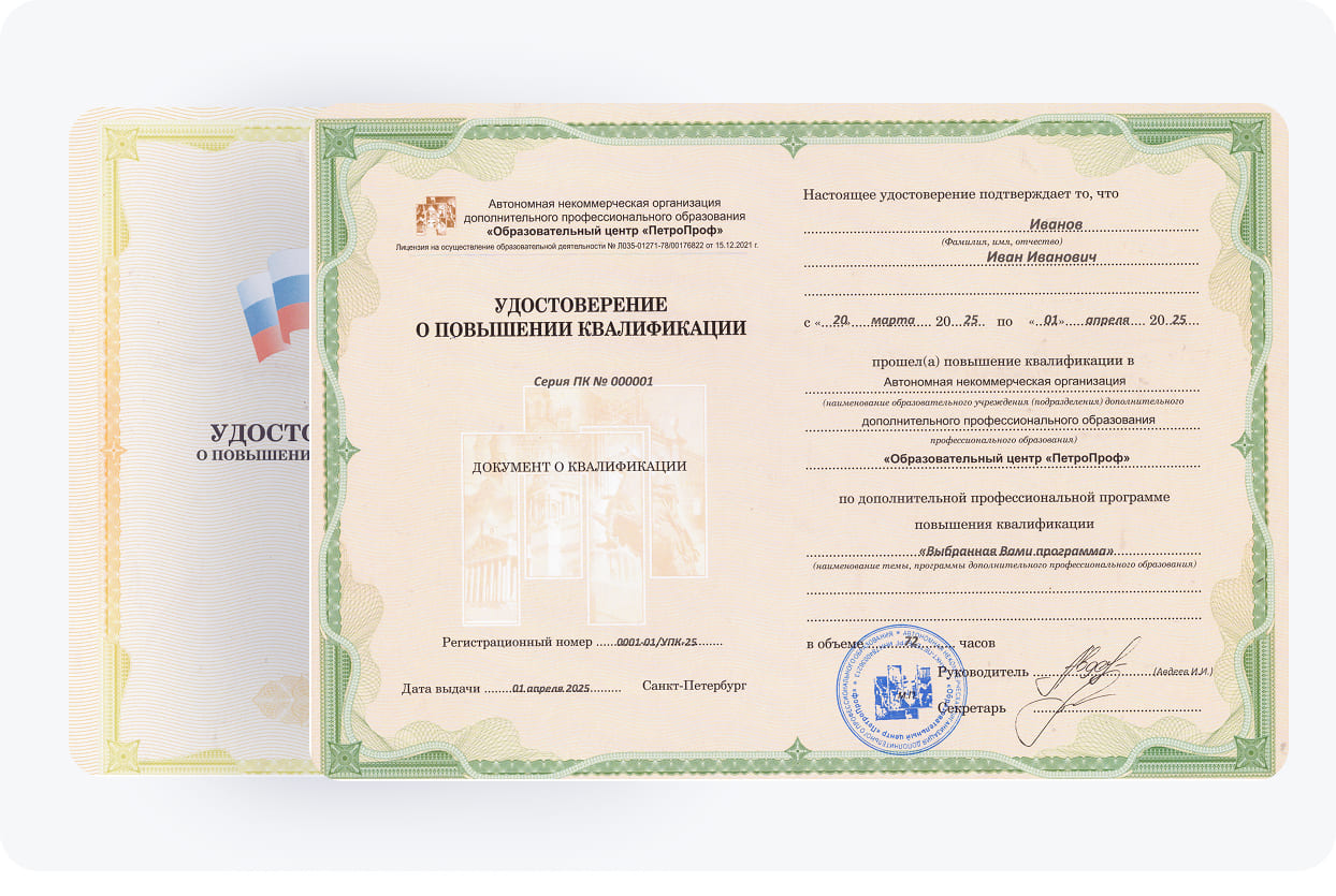 Стоит отметить, что наши программы отличаются эффективностью, понятной структурой и большим перечнем актуальных тем, разделов, модулей. В нашем образовательном центре слушатели смогут освоить их быстро, комфортно и эффективно. После сдачи итогового экзамена все клиенты получают удостоверение о повышении квалификации, отражающее их компетенции, опыт и умения.
